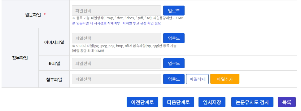 * 논문유사도 검사 파일이 업로드 된 투고 논문만 심사가 진행됨.